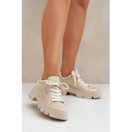 Dámské sneakersy značky Chebello. Vyrobeny z vysoce kvalitní přírodní kůže, zaručují trvanlivost a komfort. Usazeny na platformě a s plochým podpatkem, nabízejí stabilitu a pohodlí po celý den. Zaoblené špičky jim dodávají jemný, ženský charakter, a stylový střih zajišťuje, že se skvěle hodí jak k ležérním, tak k elegantnějším stylizacím. To je ideální volba pro ženy, které chtějí kombinovat módu s komfortem. Při výběru velikosti se řiďte tabulkou velikostí.