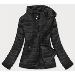 Tenká černá dámská bunda s látkovými vsadkami (RQW-7013)