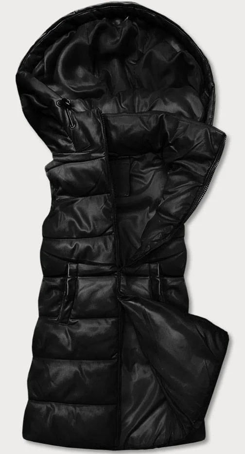 Teplá černá dámská vesta z eko kůže (D-3231-1)