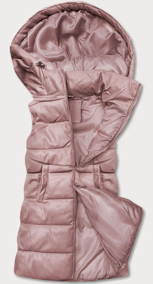 Teplá dámská vesta v pudrově růžové barvě z eko kůže (D-3231-59S)