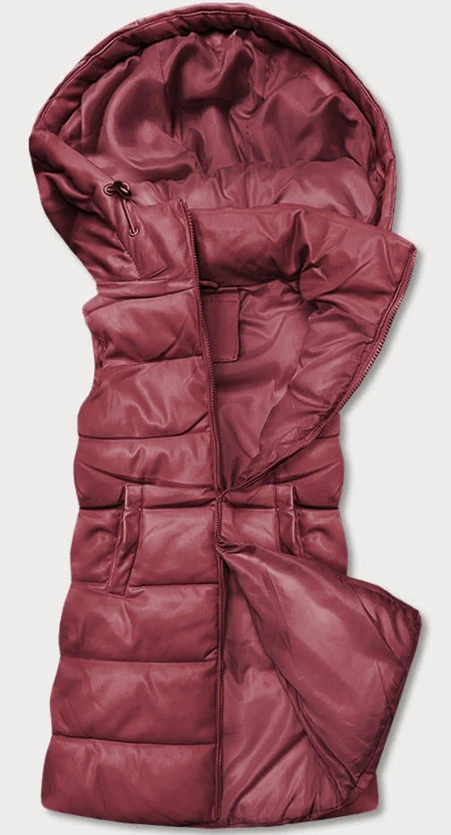 Teplá dámská vesta ve vínové bordó barvě z eko kůže (D-3231-67)