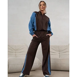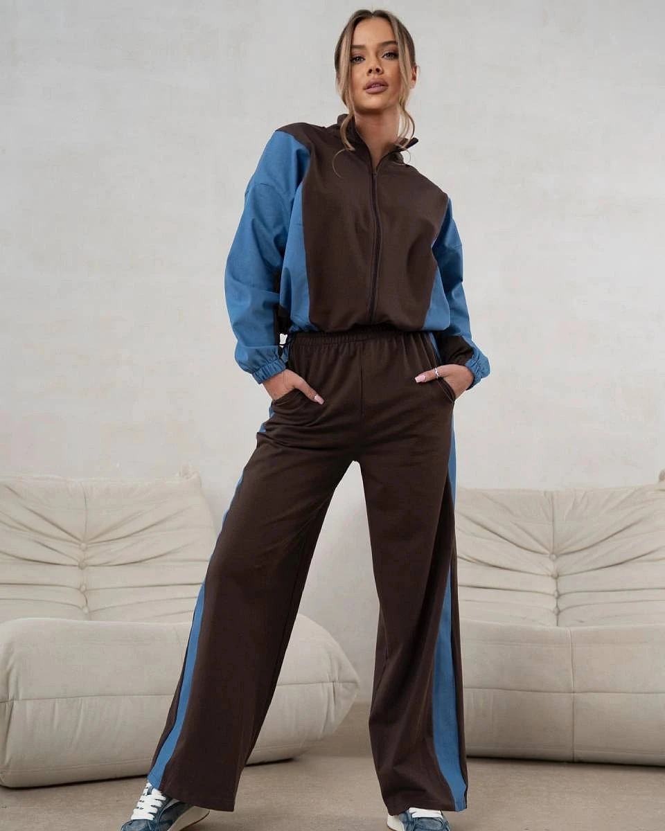 Tepláková souprava mikina na zip + široké kalhoty čokoládově modrá (821151)