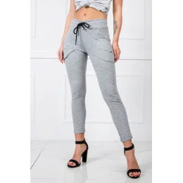 Módní tepláky jsou dnes základem šatníku každé ženy, která má ráda nejnovější trendy v oblékání. Ať už preferujete jakýkoli styl oblékání, jistě si čas od času rádi obléknete pohodlné tepláky. Tento jednoduchý model z naší nejnovější kolekce basic je velmi univerzální a nadčasový, protože ho můžete snadno kombinovat s dalšími kousky oblečení. Má velmi módní střih se štíhlými nohavicemi a vysokým pasem, který zvýrazňuje ženskou postavu a podtrhuje její proporce. Tepláky mají navíc elastický pas a šňůrku, takže si je můžete pohodlně přizpůsobit tvaru své postavy. Model je vyroben z vysoce kvalitního materiálu s vysokým podílem bavlny, který je příjemný na dotek a prodyšný.