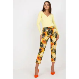 Dámské tepláky s elastickým pasem a zavazováním na šňůrku. Kapsy na bocích. Kalhoty ze vzorovaného materiálu.