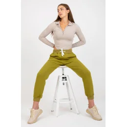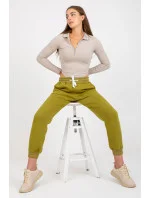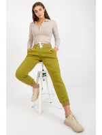 Tepláky se zavazováním v pase a nakládanými kapsami.