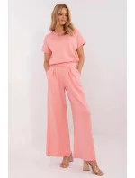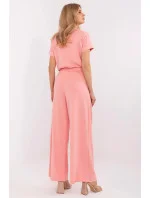 Stylové široké kalhoty typu palazzo, které kombinují pohodlí a eleganci v každodenních outfitcích. Vyráběné z měkké směsi viskózy, polyesteru a elastanu, poskytují pohodlí a volnost pohybu. Hladký materiál a široké nohavice dodávají moderní, lehce oversized charakter. Vysoký pas s elastickým pásem zajišťuje ideální přizpůsobení postavě, a ozdobné záložky na přední straně jim dodávají jedinečný vzhled. Model bez zapínání, vybavený praktickými bočními kapsami. Skvělé na každý den, jak do sportovních, tak do více elegantních outfitů.