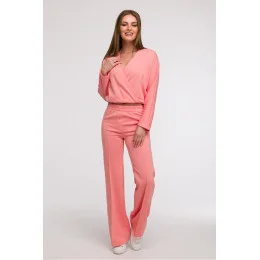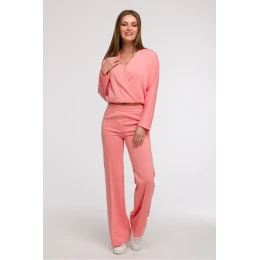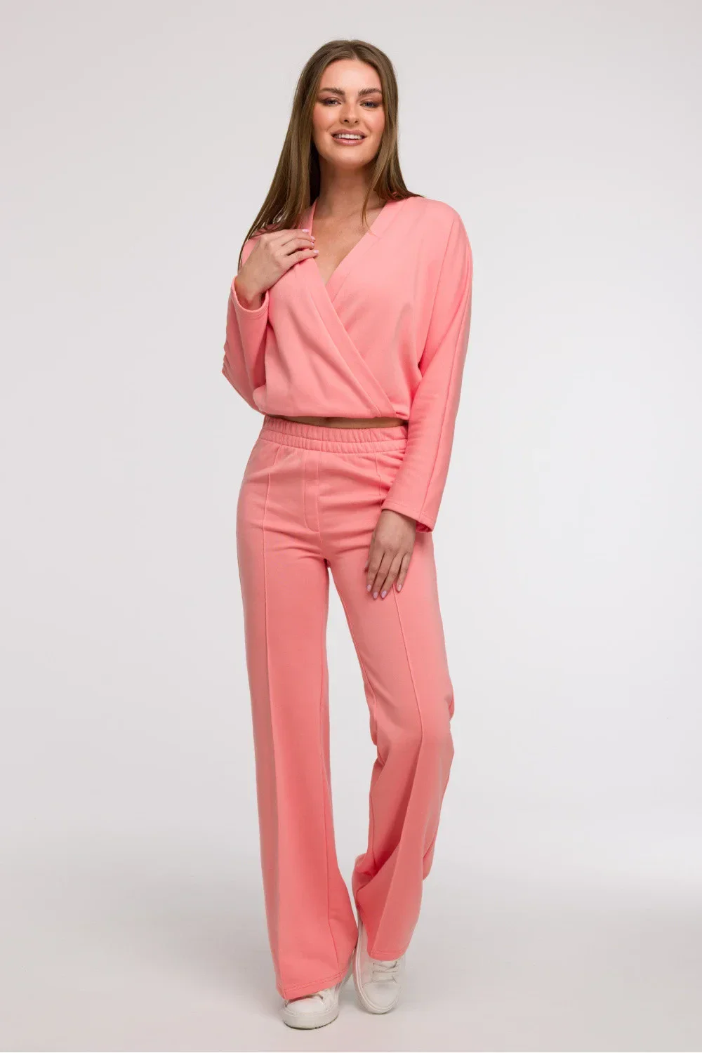 Stylové a pohodlné široké nohavice jsou ideální volbou pro ženy, které ocení pohodlí a stylový vzhled. Vyrobené z jednobarevné látky bez podšívky, skvěle se hodí jak do volného, tak trochu elegantnějšího stylu v duchu smart casual. Široké, dlouhé nohavice s prošíváním vpředu dodávají postavě lehkost a opticky prodlužují nohy. Kalhoty mají klasický, normální střih a pohodlné zapínání na gumu v pasu, což zajišťuje volnost pohybu a snadné přizpůsobení. Chybí kapsy, co zdůrazňuje minimalistický charakter modelu. Střih byl navržen tak, aby seděl různým typům postav, zejména se hodí k postavě hruška, pomáhající vyrovnat proporce těla. Navrženo a ušito v Polsku.