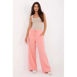 Kalhoty ve stylu casual, ideální na každý den. Vyrobena z měkké směsi viskózy, polyesteru a elastanu, poskytující pohodlí, prodyšnost a lehkou pružnost materiálu. Hladká textura látky jim dodává univerzální charakter, díky čemuž se snadno hodí k mnoha stylizacím. Model se vyznačuje vysokým pasem a širokými nohavicemi, které se krásně usazují v pohybu, zdůrazňující volný střih. V pase je praktické šněrování, umožňující přizpůsobení postavě, a boční kapsy přidávají funkcionalitu. Moderní a pohodlné, skvělá volba pro každodenní, casualové sestavy.