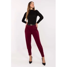 Moderní a pohodlné dámské teplákové kalhoty v casual stylu, ideální na každý den i do práce v uvolněném provedení. Vyrobena z příjemné směsi viskózy a polyesteru, zaručuje pohodlí nošení a elegantní, propracovaný vzhled. Model s vysokým pasem a se zužujícími se nohavicemi skvěle zdůrazňuje postavu, zároveň poskytuje volnost pohybu. V zadní části pasu je vsazena elastická guma, díky čemuž se kalhoty dokonale přizpůsobí postavě. Pro větší funkčnost jsou vybaveny bočními kapsami na zip, a zapínacím páskem, který jemně zdůrazní pas. Na spodním okraji nohavic jsou široké manžety s ozdobnými knoflíky, které dodávají celku stylový charakter. To je skvělá volba pro ženy, které si cení spojení pohodlí a městské elegance, ideální do práce, na procházku nebo setkání s přáteli.