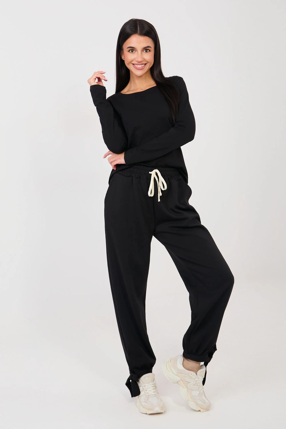 Volné tepláky typu joggery jsou ideální nabídkou na každý den, kombinující pohodlí s moderním vzhledem. Vyrobené z měkké a elastické směsi viskózy, bavlny a elastanu, zajistí pohodlí nošení a volnost pohybů. Model s hladkým vzorem a vysokým pasem skvěle padne a šňůrkování v pase umožňuje individuální úpravu. Nohavice zakončené elastickými manžetami a dodatečným šněrováním na dně zdůrazňují sportovní charakter kalhot a umožňují nastavení šířky. Praktické boční kapsy zvyšují funkcionalitu modelu. Ideální pro každodenní outfit s mikinou, tričkem nebo svetrem.