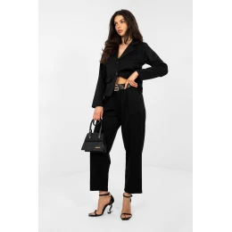 Moderní teplákové kalhoty s elegantním charakterem, které se skvěle hodí jak do každodenního nošení, do práce, tak i na společenské události. Jedná se o ideální kombinaci pohodlí a elegance v moderním stylu. Vyrobené z vysoce kvalitní viskózy s přídavkem elastanu zajistí pohodlí nošení, měkkost a volnost pohybů. Hladký vzor a precizní střih jim dodávají elegantní vzhled. Model s vysokým pasem a se zužujícími se nohavicemi, které jsou prošité do kantů, opticky prodlužují nohy a zdůrazňují postavu. Absence klasického zapínání zvyšuje pohodlí nošení, a vsazené kapsy přidávají funkčnost. Další výhodou je pásek s možností zapínání, který zdůrazňuje pas a dodává kalhotám elegantnější charakter. Jedná se o ideální volbu pro ženy, které ocení pohodlí tepláků spojené s elegantním stylem.