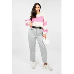 Moderní teplákové kalhoty s elegantním charakterem, které se skvěle hodí jak na každý den, do práce, tak i na slavnostní příležitosti. Jedná se o ideální kombinaci pohodlí a elegance v moderním stylu. Vyrobené z vysoce kvalitní viskózy s přídavkem elastanu zajišťují pohodlí nošení, jemnost a volnost pohybů. Hladký vzor a propracovaný střih jim dodávají elegantní vzhled. Model s vysokým pasem a se zužujícími se nohavicemi, které jsou prošité v kant, opticky prodlužují nohy a zdůrazňují siluetu. Absence klasického zapínání zvyšuje pohodlí nošení, a vsunuté kapsy přidávají funkčnost. Další výhodou je pásek s možností zapínání, který zdůrazňuje pas a dodává kalhotám elegantnější charakter. Jedná se o ideální volbu pro ženy, které oceňují pohodlí tepláků spojené s elegantním stylem.