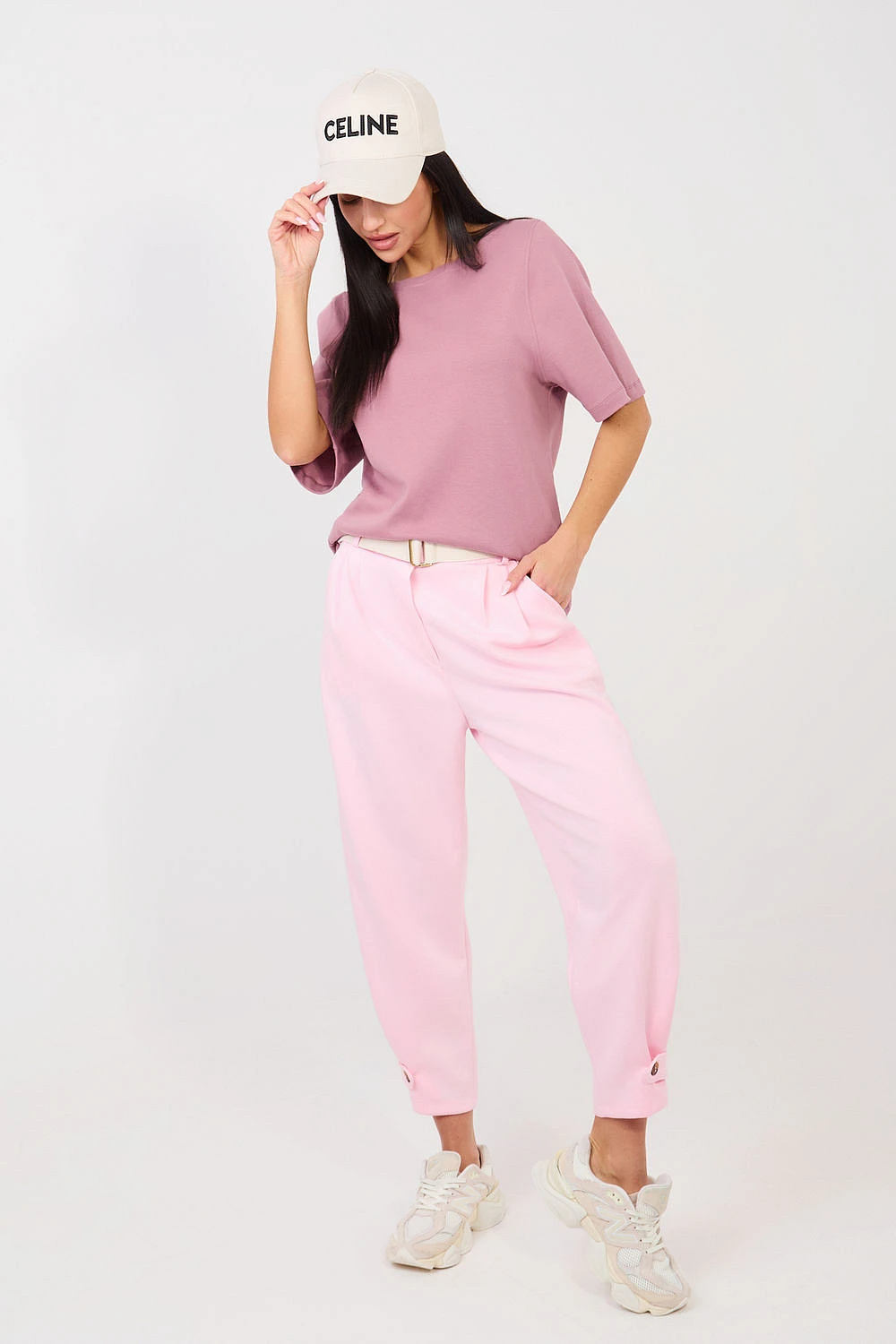 Dámské džíny ve sportovním stylu casual, vytvořené s ohledem na pohodlí při každodenním nošení. Model s hladkým vzorem se skvěle hodí do volných stylizací, ať už na procházku, nákupy nebo domácí relaxaci. Kalhoty jsou vyrobené z velmi příjemného materiálu typu „máslo“. Je to měkká, jemná a elastická tkanina kombinující viskózu, elastan a bavlnu, která zajistí vysoký komfort nošení a skvěle se přizpůsobí postavě. Model má vysoký pas a elastický pás, což zaručuje pohodlné přizpůsobení. Navíc v pase je zapínací pásek, který je praktickým a stylovým doplňkem. Kalhoty mají boční kapsy. Nohavice délky 7/8 mají zúžený střih, který zdůrazňuje postavu. Na spodním okraji nohavic jsou zapínací popruhy umožňující regulaci obvodu nohavice a přizpůsobení podle vlastních preferencí. Model bez klasického zapínání je snadný a pohodlný na nasazení.