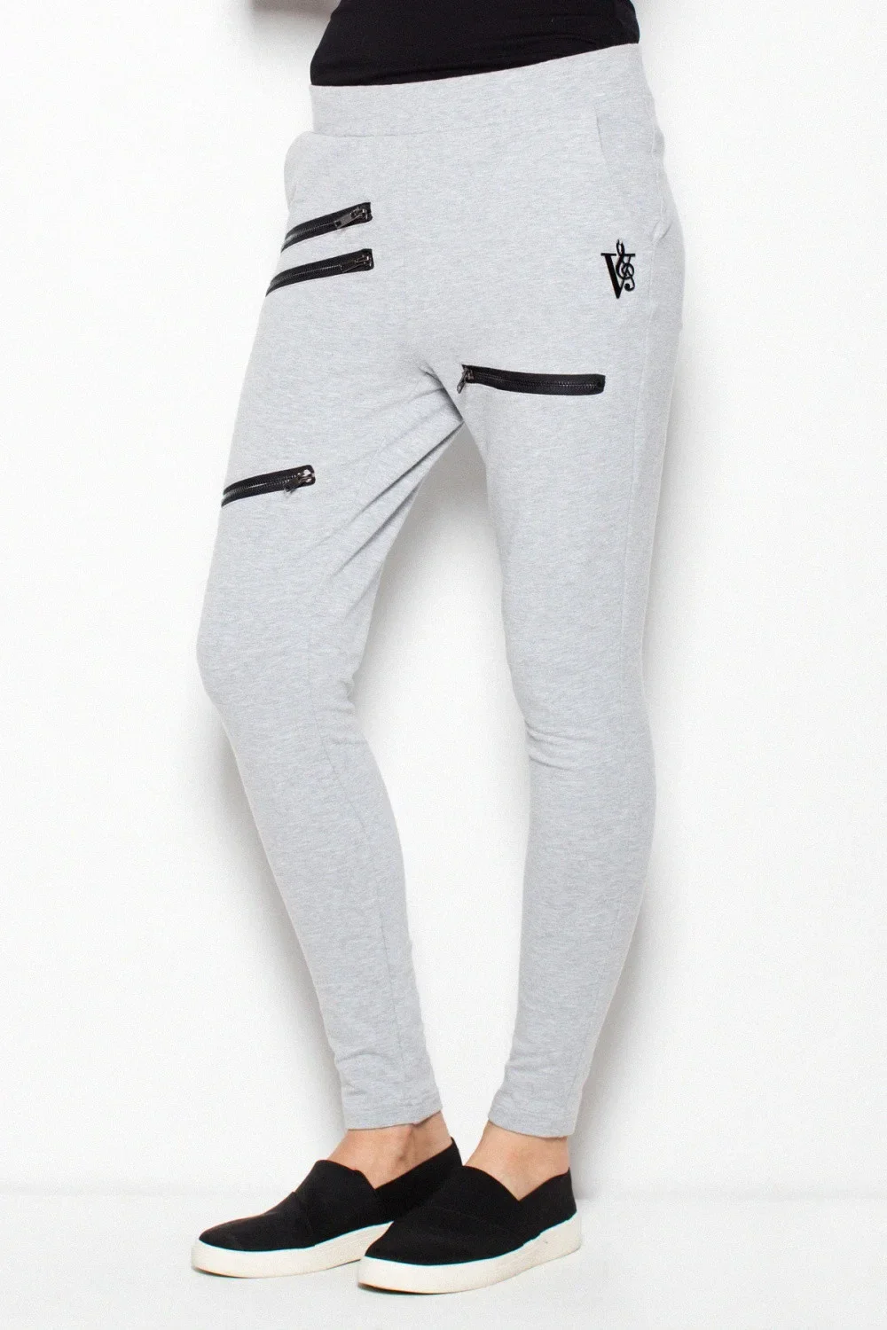 Zúžené tepláky s nízkým sedem a kapsami. Ozdobné zipy na každé nohavici. Kalhoty jsou základem pro mnoho stylů.