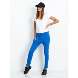 Modré bavlněné dámské tepláky.