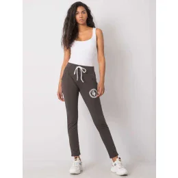 Tmavé khaki tepláky s aplikací.