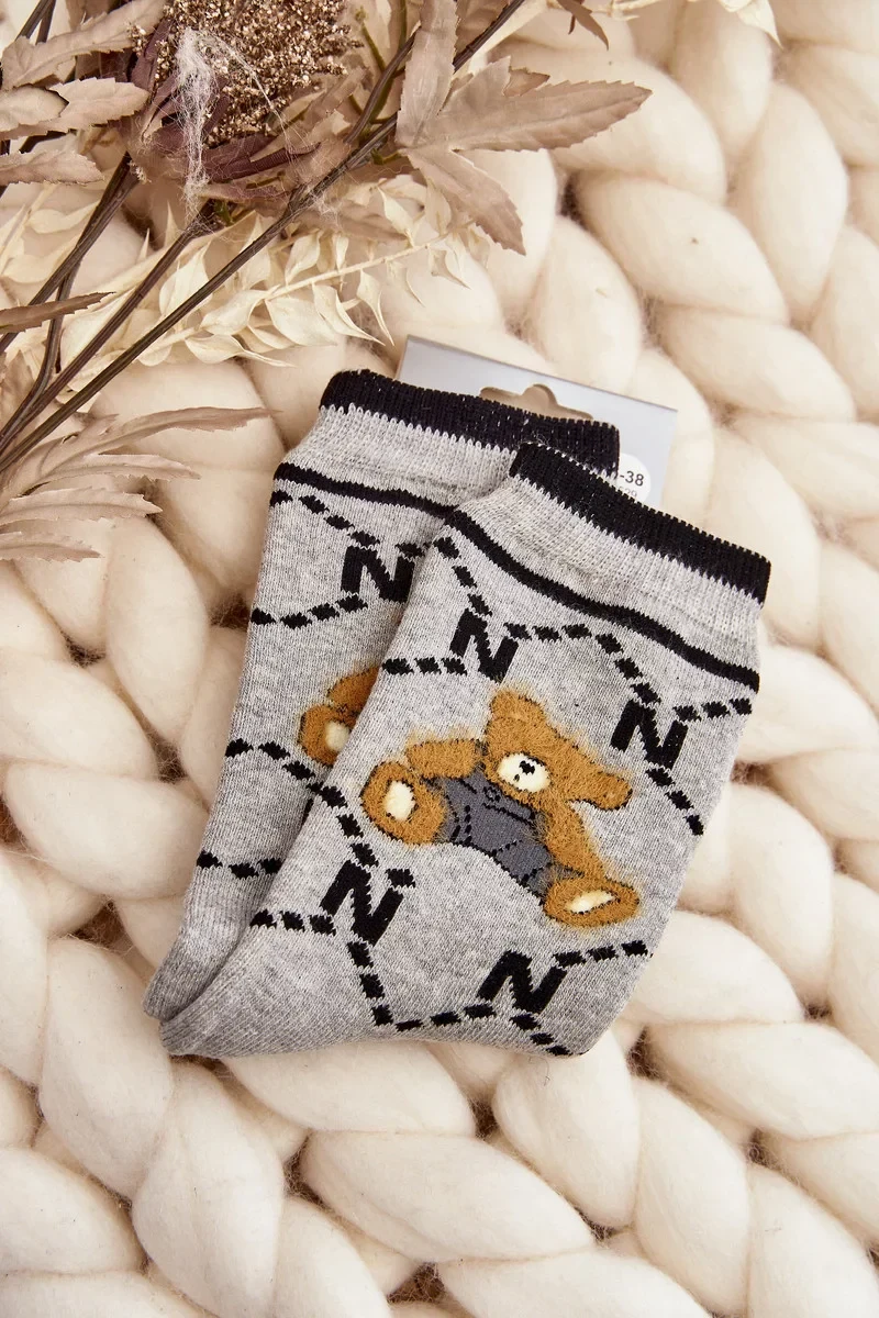 Teplé dámské ponožky, ideální do mrazivých dnů. Model s nášivkou medvídka. Díky lehké manžetě se perfektně přizpůsobí šířce nohy. Rozhodně byste je měli mít!