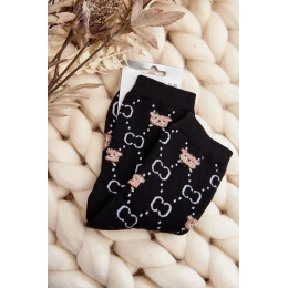 Teplé Bavlněné Ponožky S Medvídky Černé
