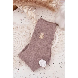 Hřejivé dámské ponožky v tmavě béžovém odstínu s roztomilým motivem medvídka. Vyrobené z měkké vlněné směsi, která poskytuje tepelný komfort, měkkost a pohodlí při nošení. Ideální volba pro zimní období a domácí pohodu.