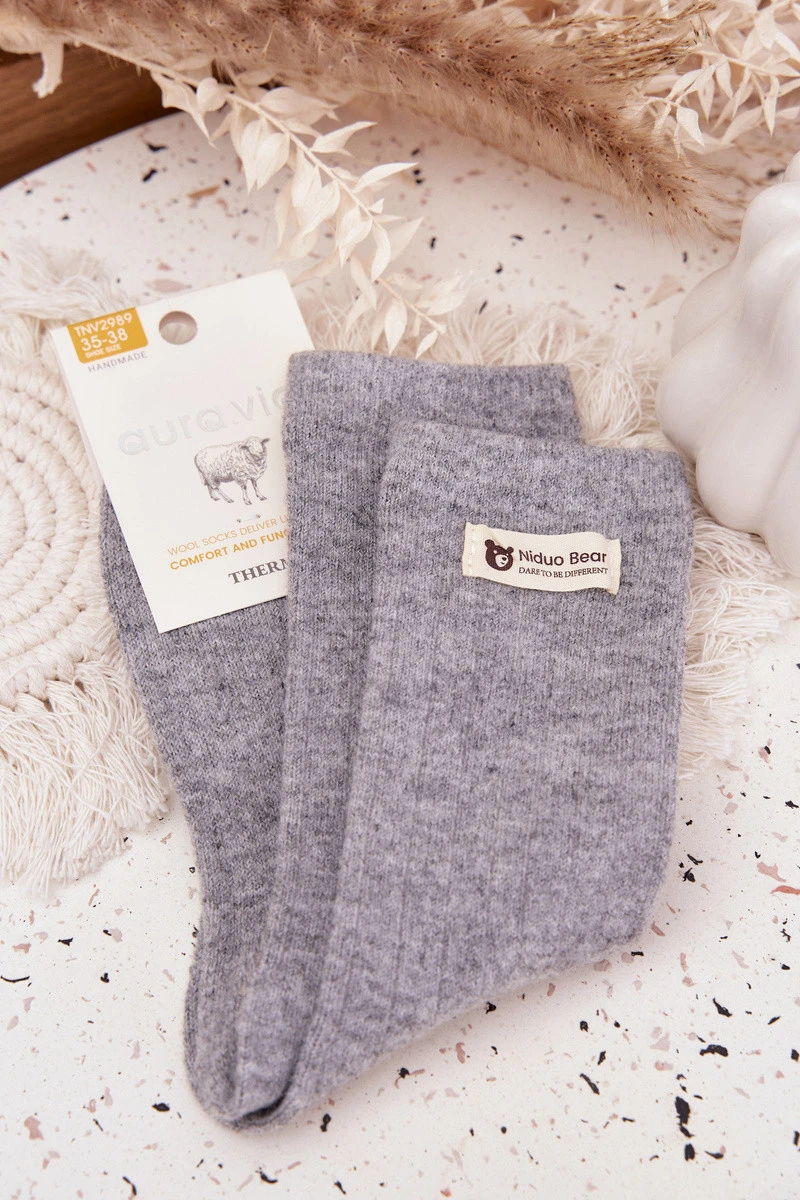 Teplé vlněné dámské ponožky s nášivkou šedé