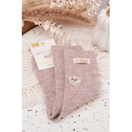 Teplé vlněné dámské ponožky s výšivkou béžové