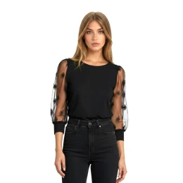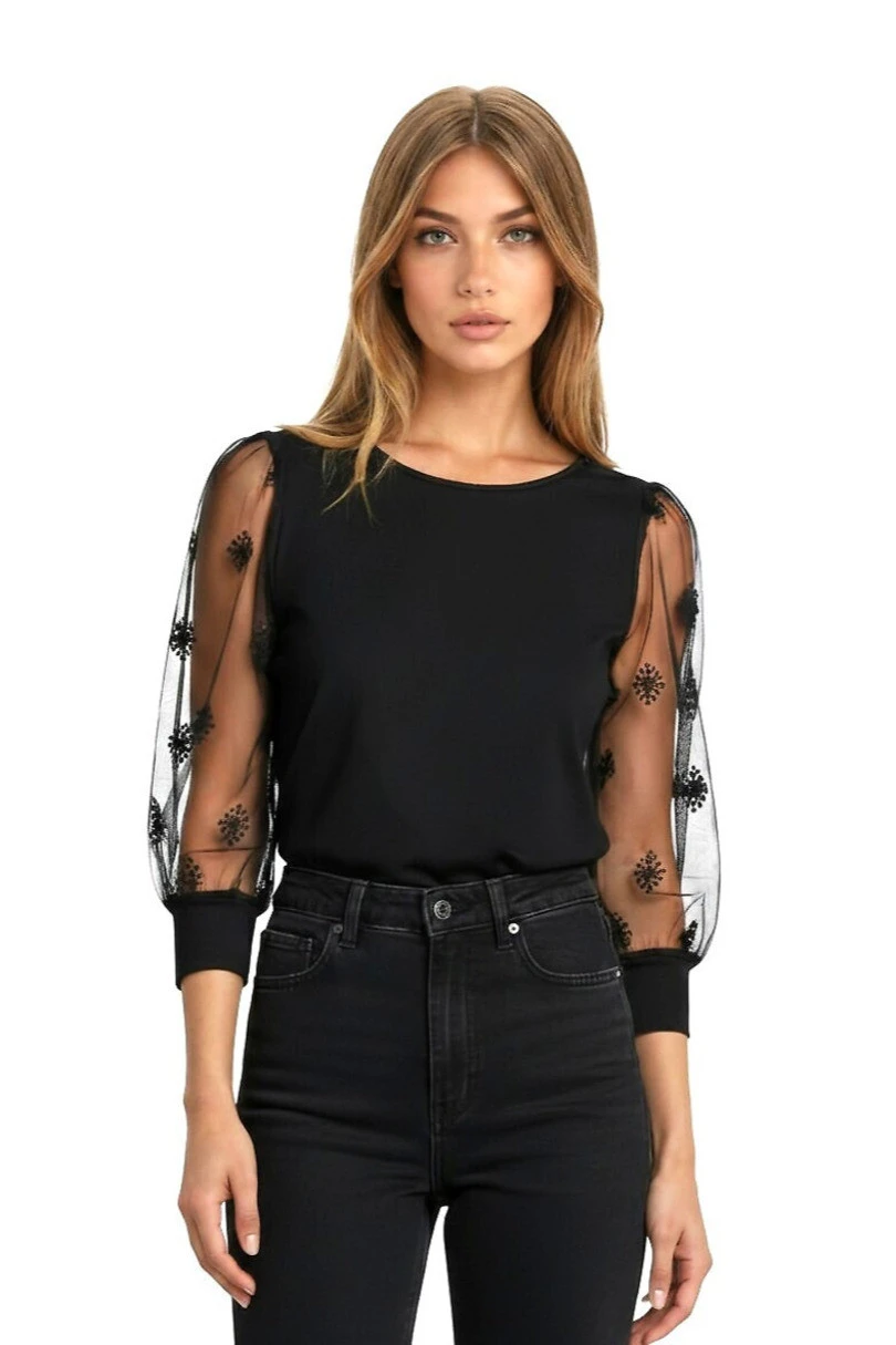 Blůza Teria 3/4 je elegantní a stylovou volbou pro ženy, které ocení rafinované detaily a pohodlí při nošení. Model je vyroben z měkké, pružné viskózy, díky níž se dokonale přizpůsobí siluetě, zajistí pohodlí po celý den a dokonalý vzhled. Klasický kulatý výstřih dodává blůze nadčasový charakter, zatímco 3/4 rukávy s mírně vyleštěným tvarem jsou výjimečnou ozdobou. Jsou vyrobeny z jemné tylové síťoviny s decentní, vystouplou výšivkou a působí mimořádně žensky a elegantně. Zakončení rukávů praktickým lemem zaručuje pohodlí při nošení a estetické uspořádání materiálu. Blůza Teria je ideální pro kancelářské stylizace, schůzky, rodinné oslavy nebo elegantní výlety.