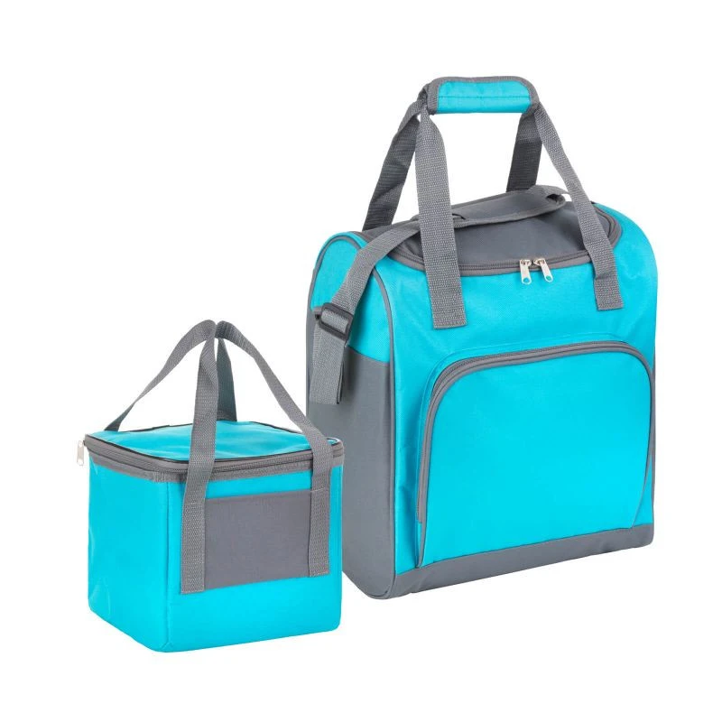 - Větší taška má tři polstrované stěny a jednu měkkou stěnu, takže se nebudete cítit nepohodlně při nošení přes rameno. Na přední straně je další kapsa na zip pro příbory nebo i malý talíř. Taška má objem 25 litrů, takže se do ní snadno vejde více potravin, když se chystáte na cestu. Kromě ramenního popruhu má taška také ucha pro pohodlné přenášení.
