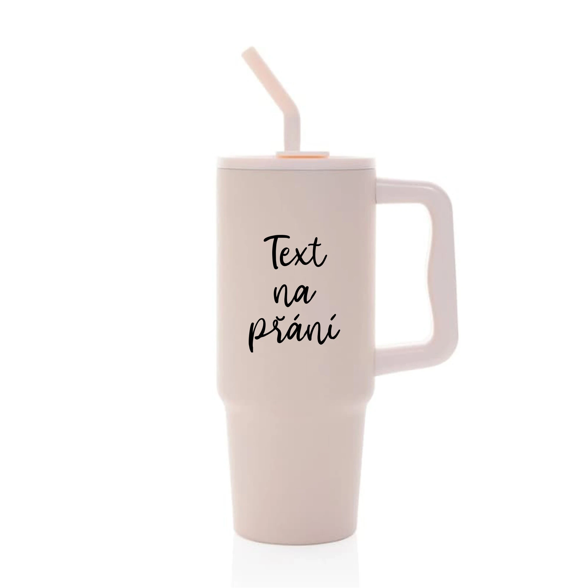 TEXT NA PŘÁNÍ - růžový cestovní termohrnek 900 ml
