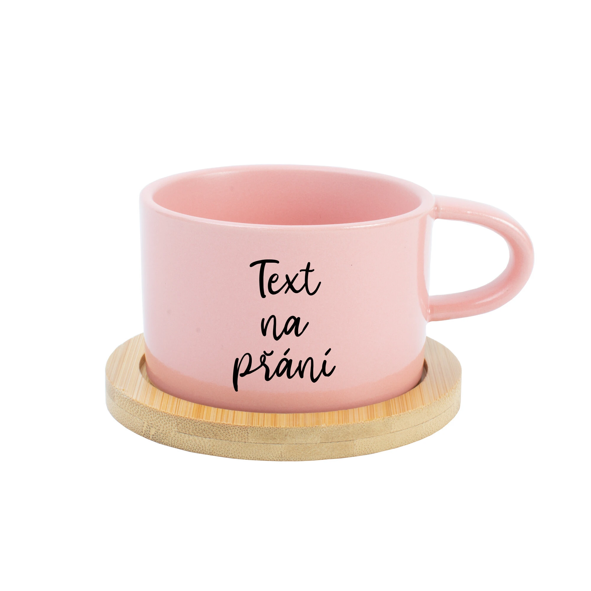 TEXT NA PŘÁNÍ - růžový keramický hrníček Makronka 200 ml