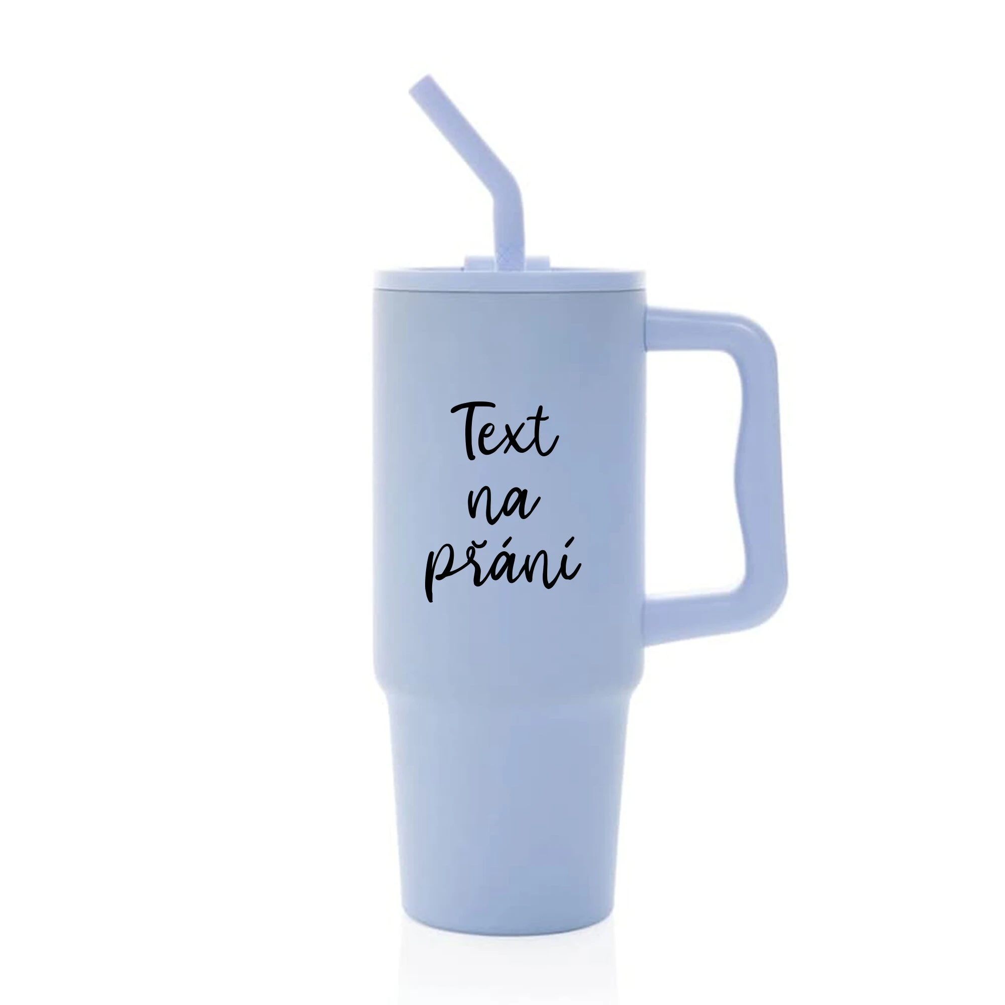 TEXT NA PŘÁNÍ - světle modrý cestovní termohrnek 900 ml