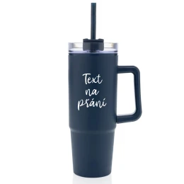 TEXT NA PŘÁNÍ - tmavě modrý cestovní termohrnek s průhledným víčkem 900 ml
