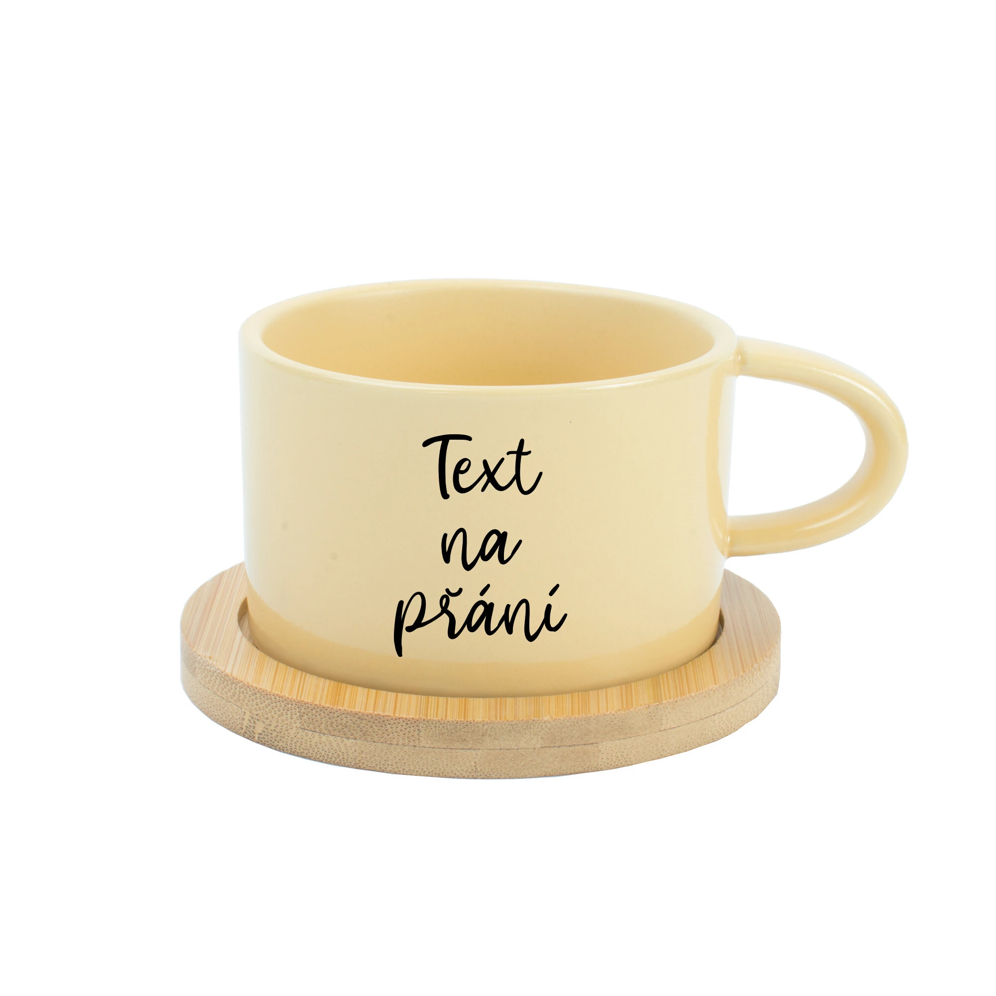 TEXT NA PŘÁNÍ - žlutý keramický hrníček Makronka 200 ml