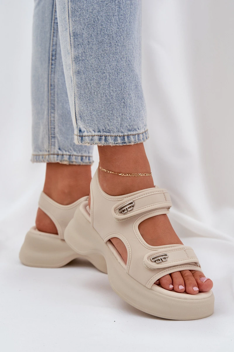 Textilní Lehká Sandály Na Platformě Světle Béžové Deniffia