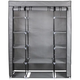 Lekka szafa z materiału świetnie zastąpi tradycyjny, ciężki mebel. Spisze się w miejscach, w których brak miejsca na pełnowymiarową szafę. Szafy materiałowe są niewielkie i doskonale pasują do małych zakamarków domu. Szafa nadaje się zarówno do sypialni, biura lub na kemping. Łatwa w montażu i demontażu, dzięki czemu można ją łatwo przetransportować. Materiał zamykany jest na zamek błyskawiczny. Szafa świetnie ochroni ubrania lub buty przed kurzem i wszelkimi zabrudzeniami.