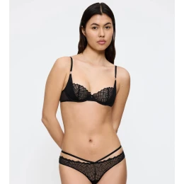 Balkonetka, která vám dodá svůdný vzhled. Celokrajkové košíčky a síťovina v bočních výztužích utvářejí efekt push-in. Grafická krajka s průhlednými díly ze síťoviny dodává na půvabu.