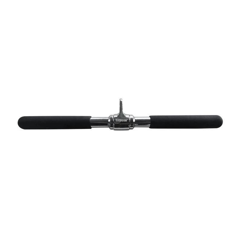 Uchwyt prosty długości 45 cm przeznaczony do wyciągu górnego i dolnego. Niezastąpione akcesorium treningowe w ćwiczeniach izolowanych mięśni bicepsów i tricepsów. Ten rodzaj uchwytu to doskonały wybór zarówno dla osób początkujących, jak i zaawansowanych sportowców. Szerokie możliwości treningowe jakie oferuje sprawiają, że znajduje on zastosowanie nie tylko w komercyjnych siłowniach, ale i wszystkich innych przestrzeniach treningowych, w których korzysta się z wyciągu. Doskonale sprawdza się podczas takich ćwiczeń jak jak uginanie ramion na wyciągu dolnym (trening mięśni bicepsów) oraz prostowanie ramion na wyciągu górnym (trening mięśni tricepsów). Wykonany z wysokiej jakości stali pozwala na używanie dużych obciążeń, co czyni go idealnym wyborem dla najbardziej wymagających użytkowników. Gumowa, antypoślizgowa rączka zapewnia mocny i pewny chwyt, a obrotowy zaczep umożliwia płynny, naturalny ruch, co zmniejsza napięcie w nadgarstkach i pozwala lepiej anga