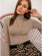 Tmavě hnědé vypasované žebrované dámské šaty s rolákem Rue Paris (5133)