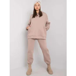 Tmavě béžová tepláková souprava s kalhotami.