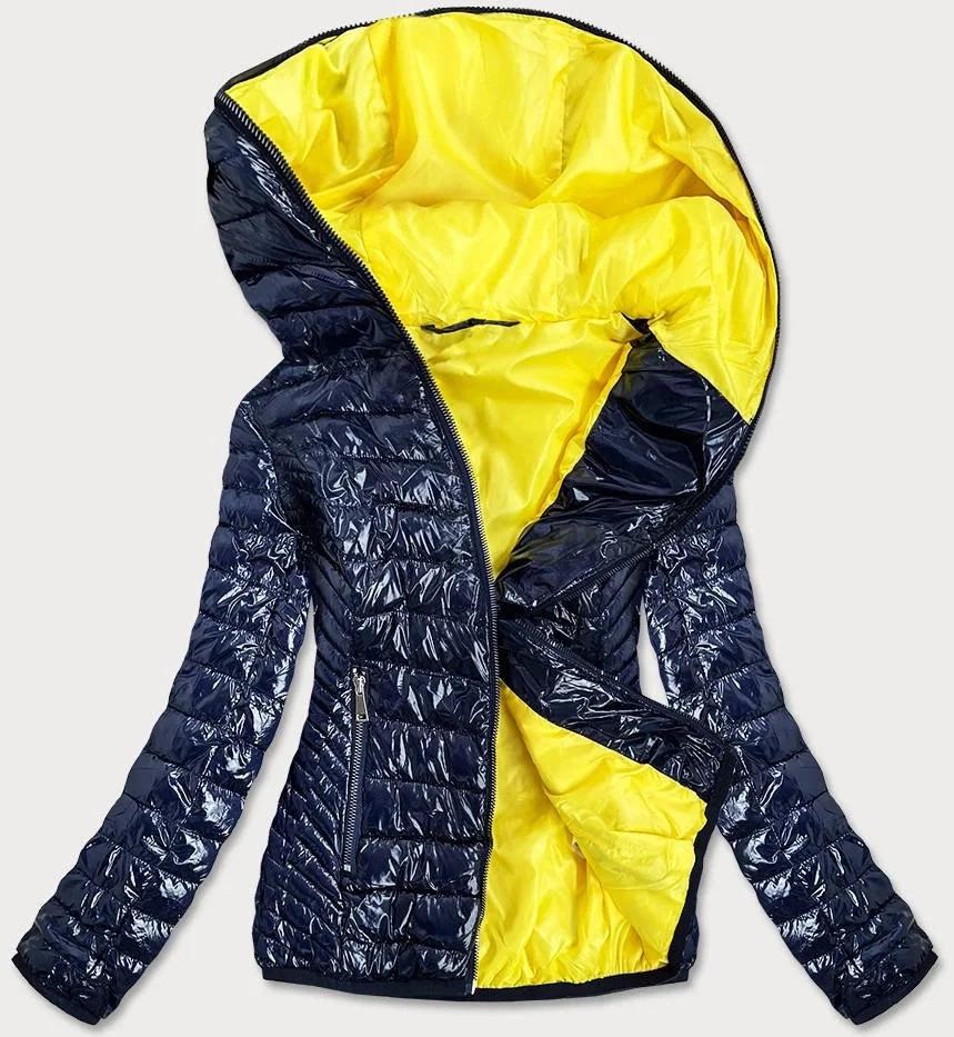Tmavě modrá dámská bunda s kontrastní podšívkou (B9546)