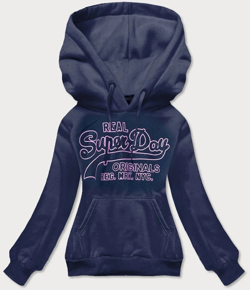 Tmavě modrá krátká dámská mikina s potiskem (26016)