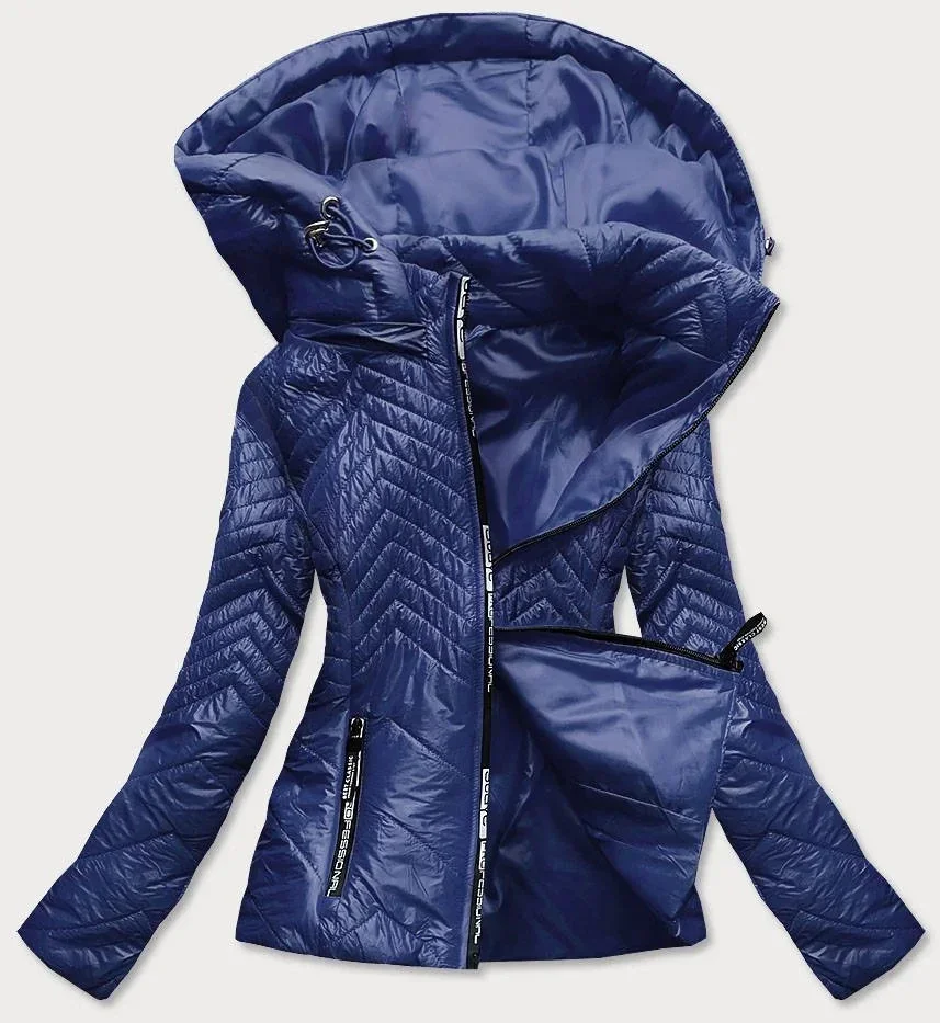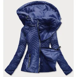 Tmavě modrá krátká dámská prošívaná bunda s kapucí (B9566)