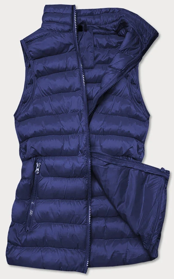 Tmavě modrá krátká dámská prošívaná vesta (23077-221)