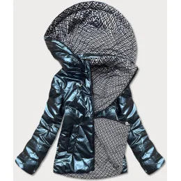 Tmavě modrá krátká lesklá dámská bunda (W586-1)