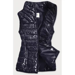 Tmavě modrá lesklá dámská vesta se stojáčkem (B0107)