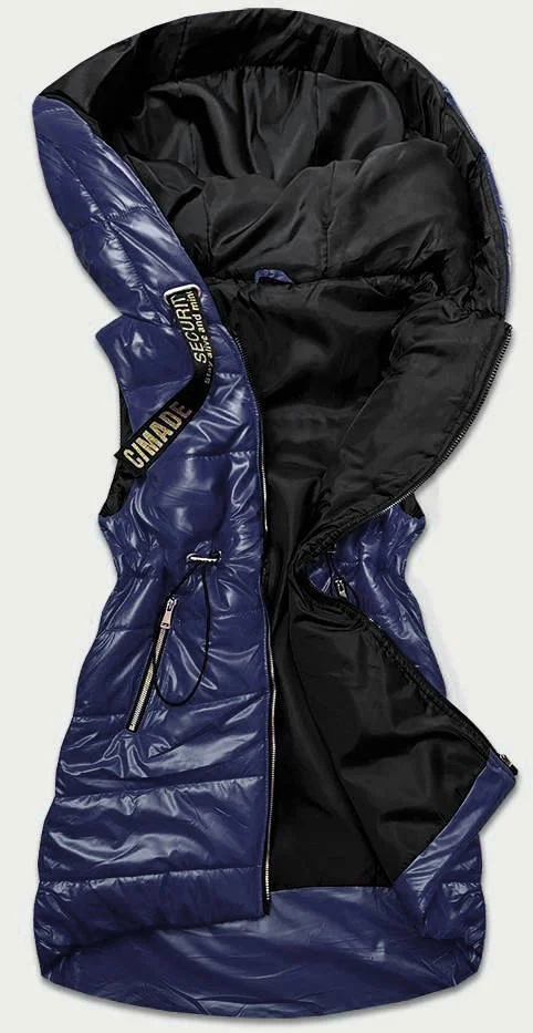 Tmavě modrá lesklá vesta s kapucí (B9783-3)