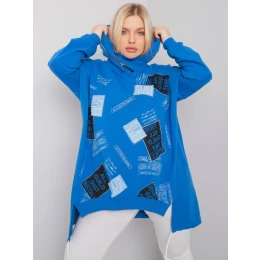 Tmavě modrá plus size mikina s potiskem a aplikací.
