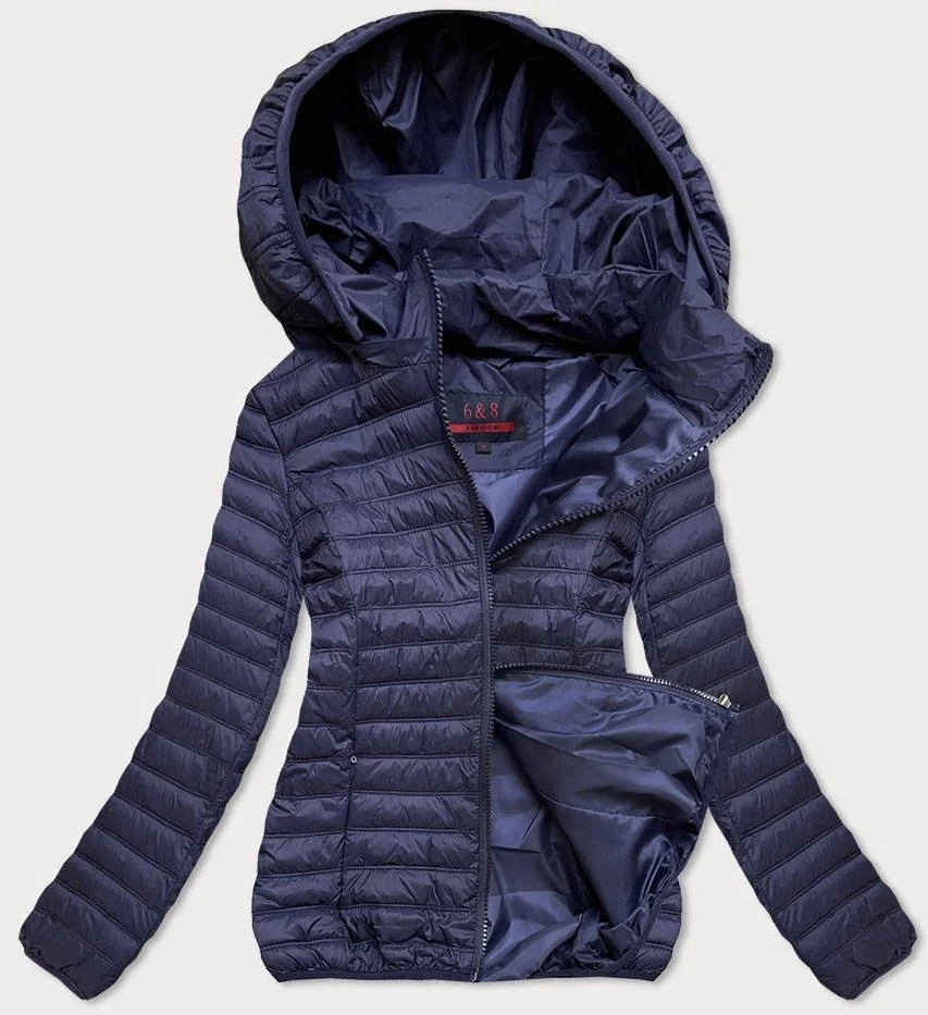 Tmavě modrá prošívaná dámská bunda s kapucí (2021-09)