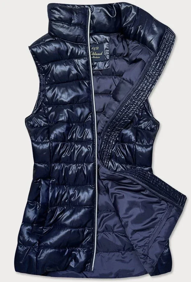 Tmavě modrá prošívaná dámská vesta (7002)