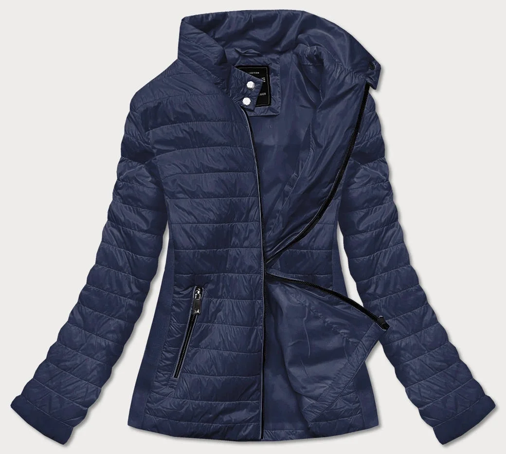 Tmavě modrá tenká dámská bunda s látkovými vsadkami (RQW-7013)