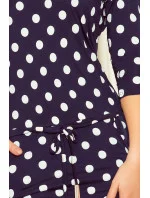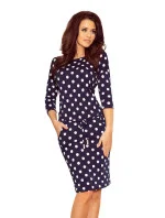 Tmavě modré dámské sportovní puntíkované šaty se zavazováním a s kapsičkami model 7239287